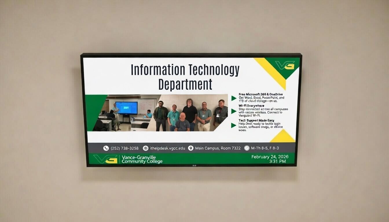 Vance-Granville Community College struggled with an outdated digital signage network that was difficult to update and physically taxing to maintain. Before this Amazon signage stick digital signage case study, the college relied on small PCs that required significant IT support and manual intervention. These displays were often inconsistent, and the time required to use the old software prevented the college from keeping information ready for students in real time.
