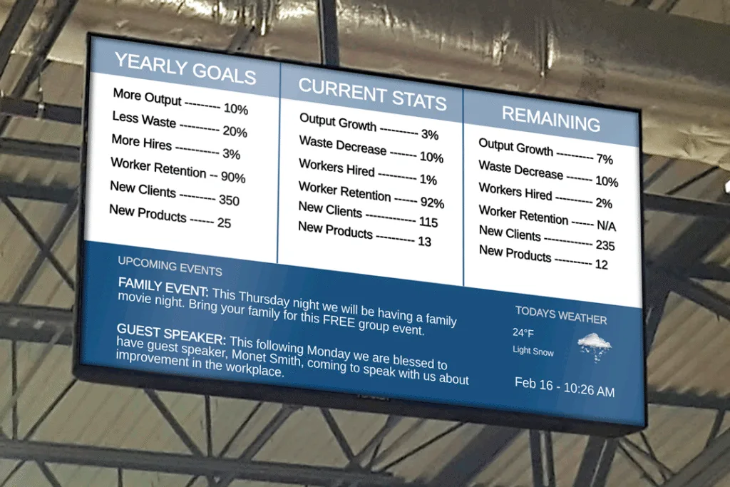 Your data tells a story, but that story is lost if it’s hidden in a spreadsheet or locked behind a login screen that no one checks. Digital signage bridges this gap, turning static screens into dynamic dashboards that drive performance and transparency.